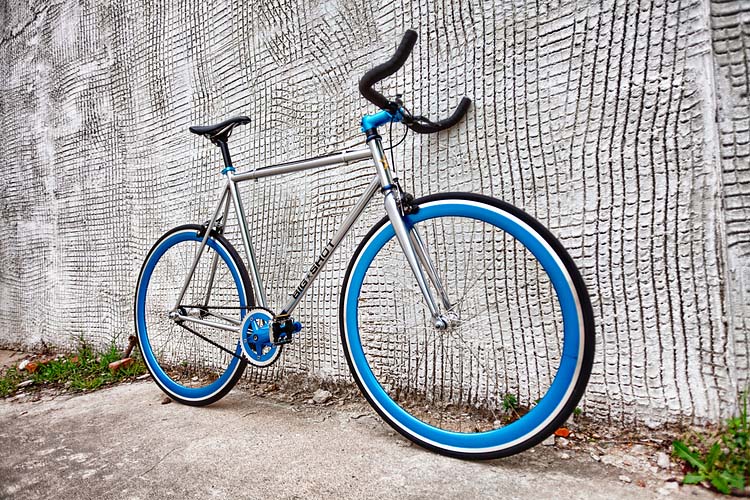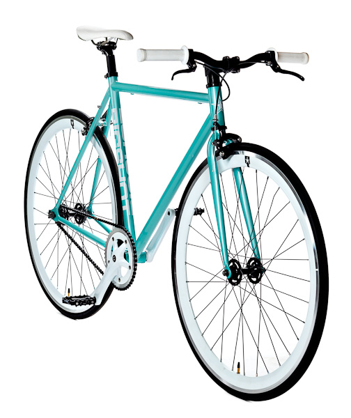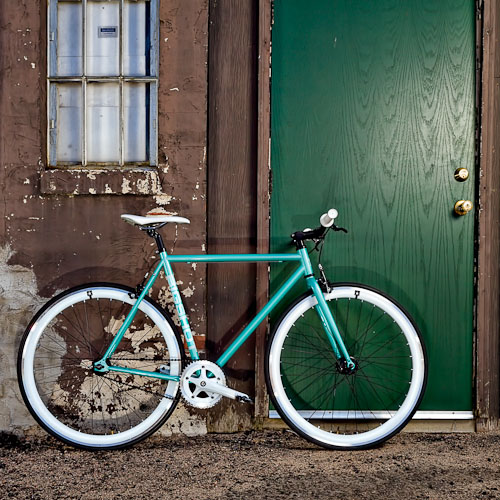 Roll in style with this unique color set-up. White components provide the perfect backdrop for a gorgeous, teal-like frame. Like all other Big Shot Bikes, it is single speed or fixed gear compatible, and geared at an ultra-efficient 46/16. Jump on this bike and prove that pastels aren’t just for Easter anymore.